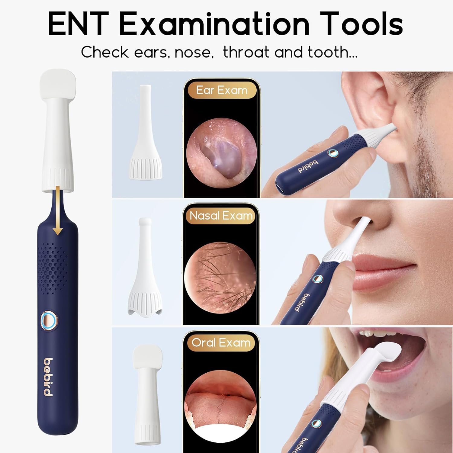 لا يقتصر استخدام الجهاز على الأذن فقط، بل يمكن استخدامه لفحص الأنف، الحلق، الأسنان، وفروة الرأس أيضا. هذا يجعله أداة طبية منزلية متعددة الأغراض، توفر عليك شراء عدة أجهزة منفصلة.