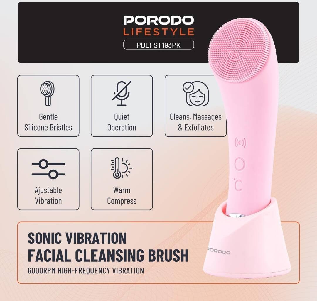 فرشاة تنظيف الوجه بالاهتزاز الصوتي من بورودو لايف ستايل توفر حلاً لطيفاً ومتعدد الاستخدامات لروتين العناية بالبشرة. شعيراتها المصنوعة من السيليكون توفر تنظيفاً وتقشيراً وتدليكاً ممتازاً، مما يمنح البشرة شعوراً بالانتعاش والنعومة. قوة اهتزازها الصوتية عالية التردد (6000 دورة في الدقيقة) تُمكّن من تنظيف عميق مثالي مع الحفاظ على نعومة البشرة. من الميزات الرائعة لهذه الفرشاة وجود أوضاع اهتزاز قابلة للتعديل لتناسب تفضيلاتك الشخصية، بالإضافة إلى إمكانية وضع كمادة دافئة لتهدئة عضلات الوجه. تتميز الفرشاة بمقاومتها للماء بمعيار IPX6، مما يضمن حمايتها من السقوط وتسرب الماء. بطاريتها بسعة 400 مللي أمبير، تكفي لحوالي 3.5 ساعات في وضع الاهتزاز و30 دقيقة في وضع التسخين، مع ساعتين فقط لشحنها بالكامل عبر منفذ USB-C. بوزن 112 غراماً فقط، تُعد هذه الفرشاة الصغيرة مثالية للاستخدام اليومي، فهي تعمل بهدوء وتوفر علاجات فعالة وملطفة للعناية بالوجه.