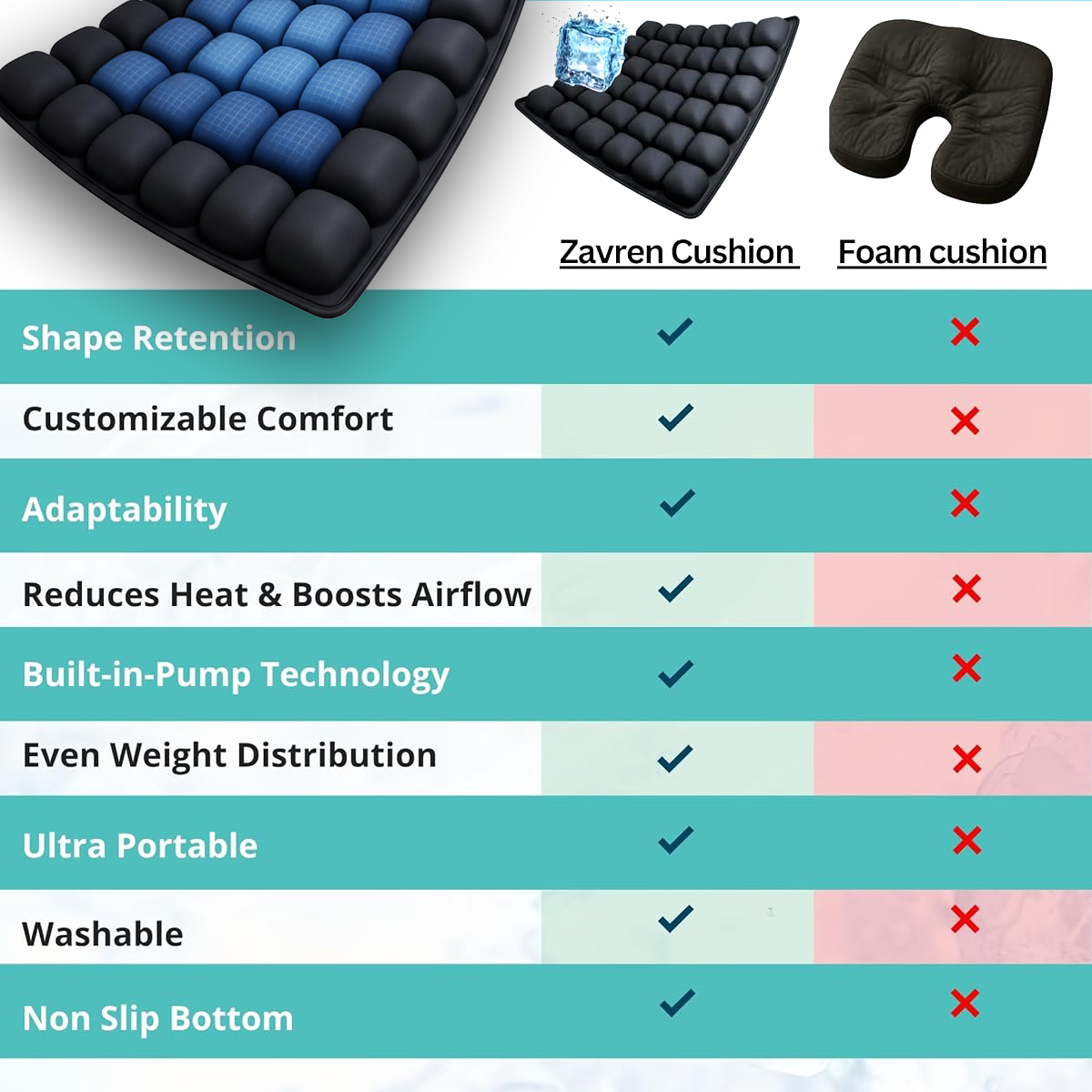 ✨ مميزات وسادة المقعد الهوائية: